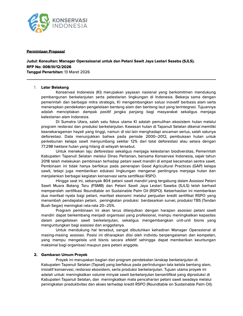Konservasi Indonesia (KI) is seeking a qualified and motivated individual as Sundaland Ocean Manager to lead and implement ocean programs... View Detail